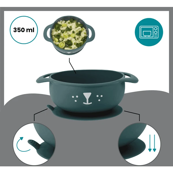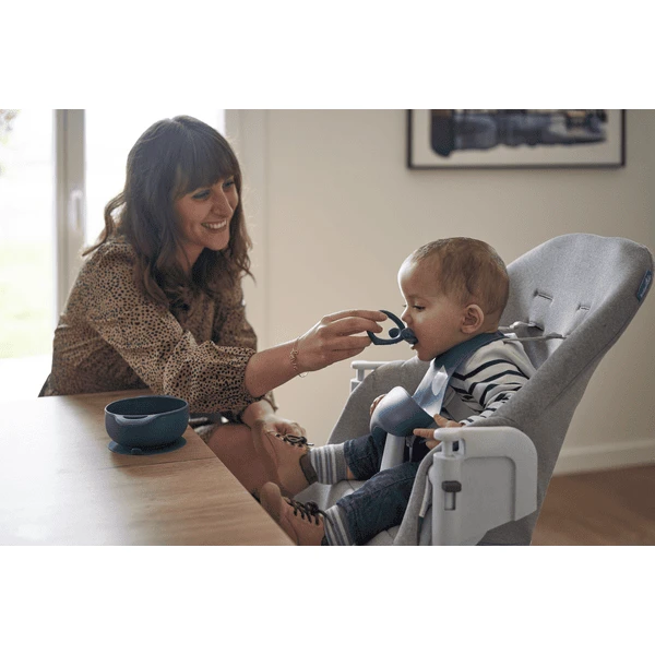 - Dankzij de antislip zuignap staat de kom stevig op de tafel of het dienblad van de kinderstoel