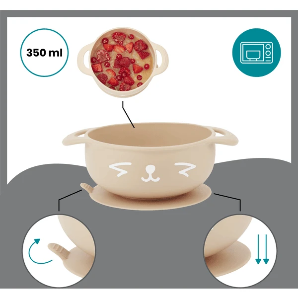 - Dankzij de antislip zuignap staat de kom stevig op de tafel of het dienblad van de kinderstoel
