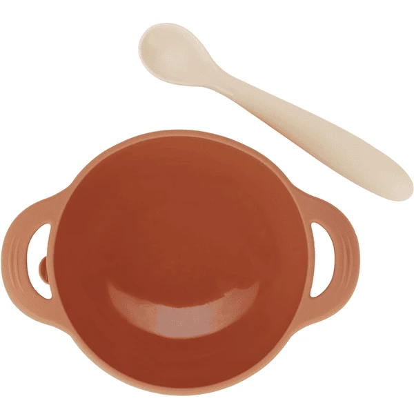 - De 2-delige set bestaat uit een kom en een zachte lepel