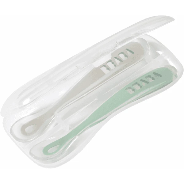 BEABA ® Babylepel set van 2 siliconen 1e leeftijd, velvet grijs/sage groen
