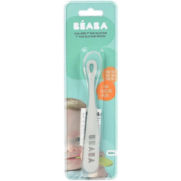 BEABA Ergonomische siliconen babylepel 1e leeftijd grijs