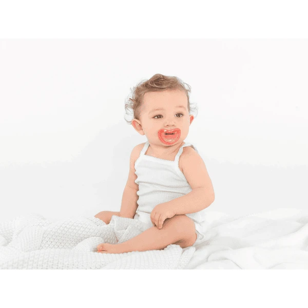 Laat je kind zachtjes zuigen. Tenslotte een fopspeen die de ontwikkeling van het gehemelte, de kaak en de tanden ondersteunt – en ze niet in gevaar brengt. In feite kunnen baby’s nu zuigen zonder risico op misvorming van de kaak en scheve tanden. Sterilisatie- en transportdoos inbegrepen. Verkrijgbaar in de maten 0,1 en 2.