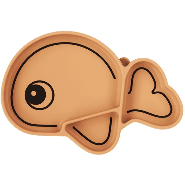 Mooi en praktisch menubord gemaakt van 100% voedselveilig en BPA-vrij siliconen. Het is anti-slip en ideaal om te leren eten. De afgeronde binnenranden helpen uw kind om het voedsel gemakkelijker op de lepel of vork te duwen. Druk de plaat naar beneden en hij blijft kleven op de meeste gladde oppervlakken. Dit voorkomt dat het kind het bord omkiept of naar beneden gooit. Onder de plaat is een lus verborgen, zodat hij gemakkelijk kan worden losgemaakt. Het praktische kinderbordje is verkrijgbaar in zacht mosterdgeel met een zwarte omlijnde opdruk. De vorm van Wally de walvis zorgt voor extra plezier. Met zijn praktische functies en schattige Design is het menubord ideaal voor kleine zelfeters.