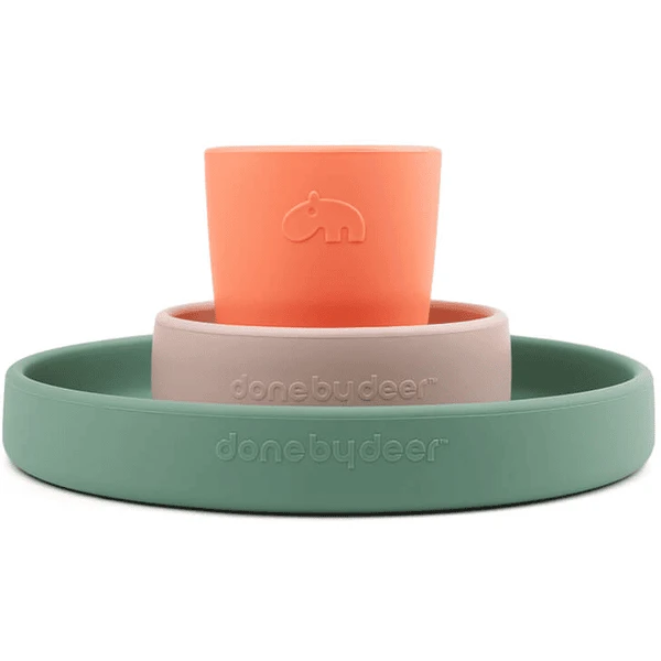 De praktische anti-slip siliconen serviesset bestaat uit een bord, een kom en een minibeker. Het is perfect voor baby’s en peuters.
