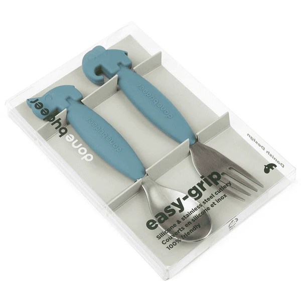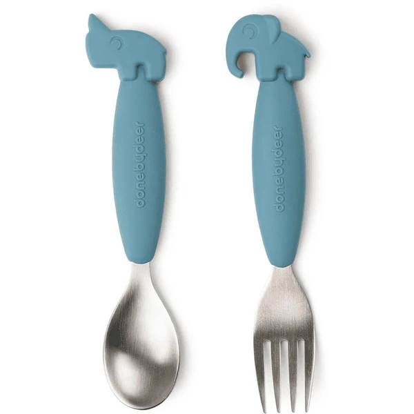 Done by Deer ™ Easy-grip lepel en vork set, Herten friends Blauw