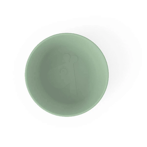 Lieve Raffi kijkt ons aan vanuit de praktische kiddish schaal in het groen. De Kiddish kom heeft een mat, zijdeachtig oppervlak en de perfecte maat voor peuters die net de wereld van het eten beginnen te verkennen.
