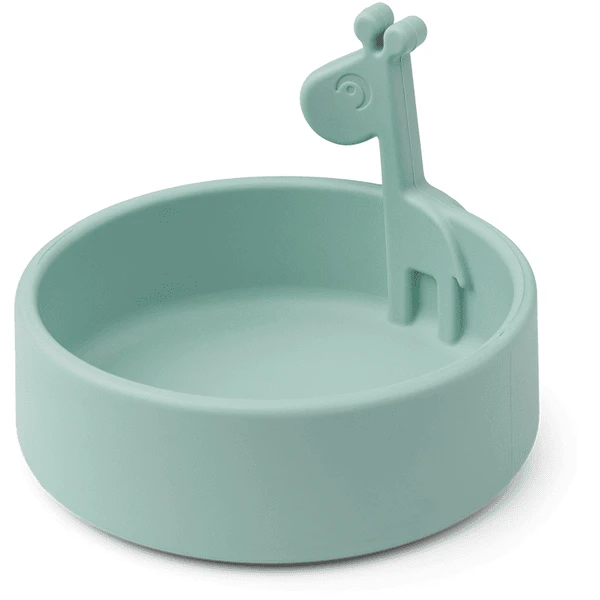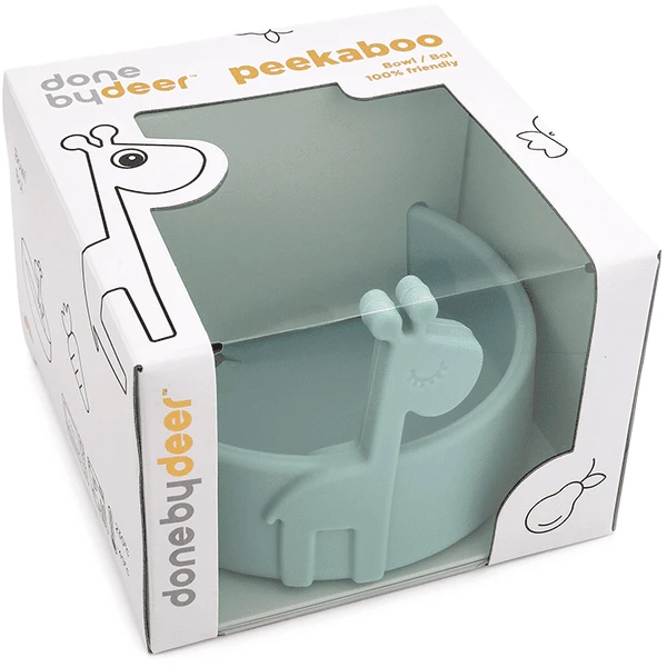 Kiekeboe, het is tijd om te eten! Raffi komt tevoorschijn uit de schattige en praktische siliconen kom, klaar om van het eten een extra leuk moment van de dag te maken. Met zijn grote hoogte en afgeronde binnenranden is het kommetje ideaal om gemakkelijk in te scheppen wanneer het kind zelfstandig leert eten. De schattige kom is gemaakt van siliconen van levensmiddelenkwaliteit, waardoor het splintervrij is en geschikt voor de magnetron, oven, vriezer en vaatwasser, en het heeft bovendien antislip-eigenschappen. De duurzame siliconen kom is perfect voor het opwarmen van babymaaltijden. De kleintjes zullen de schattige giraf graag bij zich hebben als ze eten – en pas op, een lange nek is perfect om een hapje te stelen. De praktische kom heeft een zachtblauwe kleur die past bij de Peekaboo serviescollectie en wordt geleverd in een schattig versierde geschenkdoos.