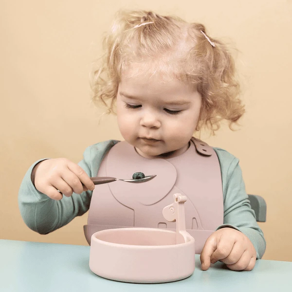 De Peekaboo set voor de eerste maaltijd is ontworpen om de nieuwsgierigheid van kleine eters te wekken. Elphee en Raffi gluren uit de afwas – en maken van de maaltijd een extra leuk moment van de dag. Een perfecte maaltijdset voor de eerste maaltijden en om te leren zichzelf te voeden. De schattige kom, lepel en praktische slab zijn gemaakt van voedselveilige siliconen, waardoor de set breukvast en magnetronbestendig is, en bovendien antislip en anti-slip eigenschappen heeft. De set heeft praktische details die het voeden ondersteunen. De kleintjes zullen het leuk vinden om de grappige dieren bij zich te hebben als ze eten – laat Elphee’s zak het eten opvangen dat verloren gaat en laat Raffi hen aanmoedigen om de spannende mijlpaal van zelfstandig eten te bereiken.