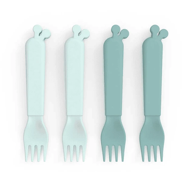 De duurzame en robuuste kindervorkjes zijn vaatwasmachinebestendig en zijn gemaakt in Denemarken. Wanneer ze versleten zijn, kunnen ze worden gerecycleerd en tot een nieuw alledaags voorwerp worden omgevormd.