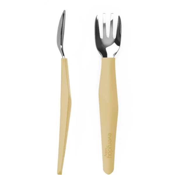 Is het tijd om zelfstandig te leren eten? De Everyday Baby Eating Learning Bestek bestaat uit een roestvrijstalen vork en lepel met een intelligent ontworpen siliconen handvat. Het handvat design helpt peuters om het bestek op een natuurlijke manier vast te houden, net als volwassenen. Past perfect in de handjes van kleine kinderen om hen te helpen zelfstandig te leren eten. Stijlvol. Design . Gemaakt van hoogwaardige materialen: roestvrij staal en silicone.