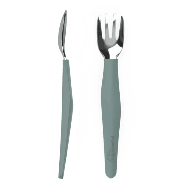 Is het tijd om zelfstandig te leren eten? De Everyday Baby Eating Learning Bestek bestaat uit een roestvrijstalen vork en lepel met een intelligent ontworpen siliconen handvat. Het handvat design helpt peuters om het bestek op een natuurlijke manier vast te houden, net als volwassenen. Past perfect in de handjes van kleine kinderen om hen te helpen zelfstandig te leren eten. Stijlvol. Design . Gemaakt van hoogwaardige materialen: roestvrij staal en silicone.