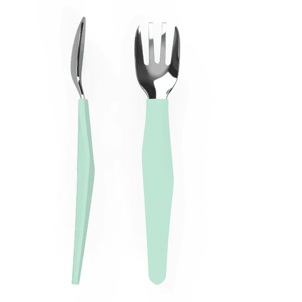 Is het tijd om alleen te leren eten? De Everyday Baby Het “Leren eten”-bestek bestaat uit een roestvrijstalen vork en lepel met een slim ontworpen siliconen handvat. Het handvat design helpt peuters om het bestek op een natuurlijke manier vast te houden, net als volwassenen. Past perfect in de handjes van kleine kinderen om hen te helpen zelfstandig te leren eten. Stijlvol. Design . Gemaakt van hoogwaardige materialen: roestvrij staal en silicone.