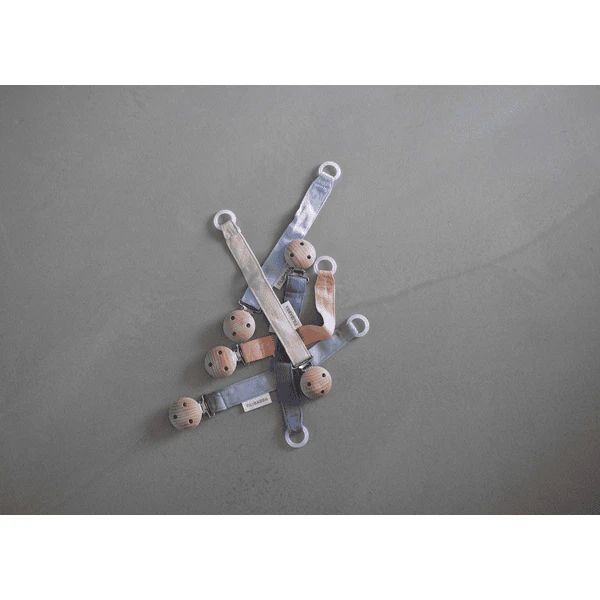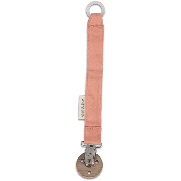 De fopspeenketting is gemaakt met een nikkelvrije Metal lclip op een houten knoop die aan baby’s kleertjes wordt vastgemaakt, zodat de fopspeen altijd in de buurt is en niet op de grond valt. Aan het andere uiteinde kan de dummy gemakkelijk aan de siliconenring van de dummyketting worden bevestigd. Goedgekeurd volgens EN 12586.