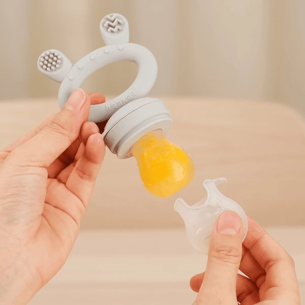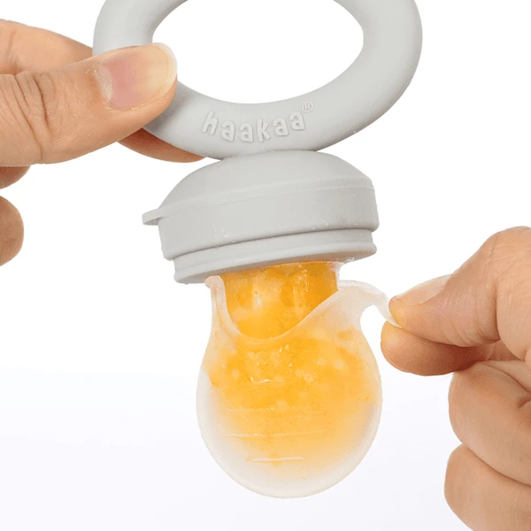 - Past over het siliconen zakje van de fruit sipper om overlopen te voorkomen bij het invriezen van porties