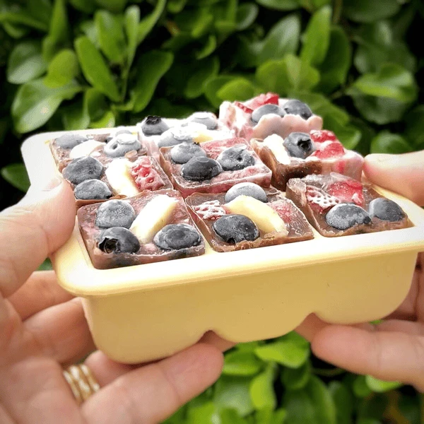 - Plaats gewoon moedermelk, yoghurt of pap in de compartimenten, dek de vorm af met het deksel en plaats in de vriezer