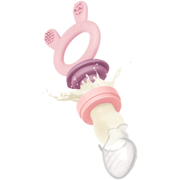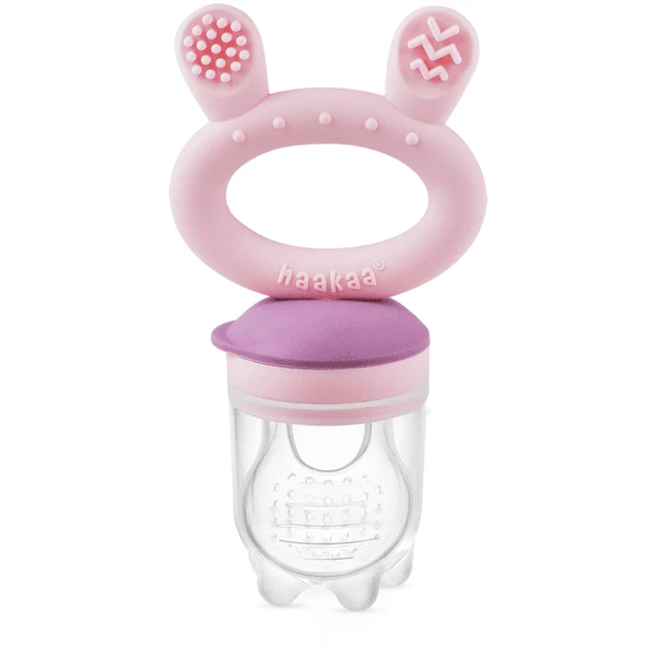 Product details: De voederbak is gemaakt van 100% silicone, waardoor hij veilig is voor uw baby om op te kauwen en te zuigen. Zacht siliconen zakje met kleine gaatjes die alleen kleine, verteerbare stukjes voedsel doorlaten Een lekvrij deksel is inbegrepen, zodat u perfect formaat ijskoude traktaties direct in de voederbak kunt invriezen. Voetjes op het deksel maken het mogelijk de voederbak rechtop te zetten Het lipje op het deksel maakt de zak gemakkelijk toegankelijk voor schoonmaken/vullen Gemakkelijk te demonteren en te reinigen – geen ruimte voor bacteriën om zich voort te planten De gestructureerde konijnenoren aan de andere kant bieden afwisseling voor kleine handjes en kunnen worden gebruikt als bijtringvervanger. Geschikt om in te vriezen Design : roze