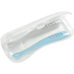 BEABA Set Van 2 Siliconen Babylepels Met Opbergdoosje 1e Leeftijd Blauw/grijs