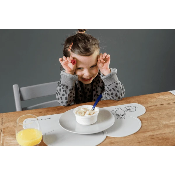 De placemat van Kindsgut is heel gemakkelijk schoon te maken, u kunt hem gewoon met een vochtige doek afnemen of in de vaatwasser doen. Dit maakt eten leuk!