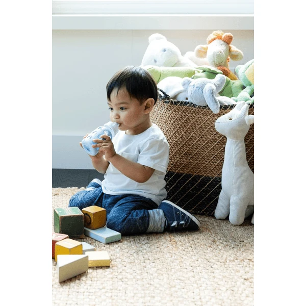- Een afneembaar hoes van siliconen beschermt het glas tegen breken en zorgt er tegelijkertijd voor dat de baby de fles goed kan vasthouden.