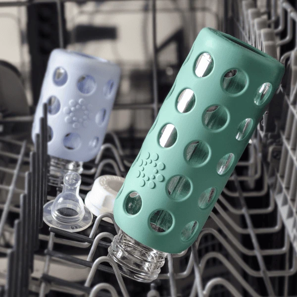 - Het temperatuurbestendige borosilicaatglas van de Lifefactory glazen babyflessen biedt de hygiënische en onschadelijke oplossing voor de gezondheid.
