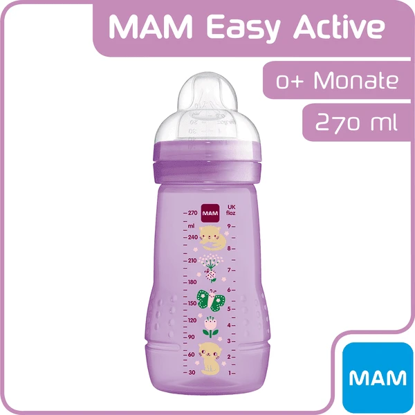 De Easy Active drinkfles is een geweldige aanvulling op de uitrusting van elke baby. Met zijn ergonomische Design ligt hij zowel voor ouders als baby’s lekker in de hand. De natuurlijke speen van MAM SkinSoft-siliconen voelt onvergelijkbaar zacht en comfortabel aan in baby’s mondje dankzij de unieke platte en flexibele vorm. Dit geeft baby’s een vertrouwd gevoel. Daarom accepteert 94% van de baby’s de MAM Skin Soft-speen zonder problemen*. Dit maakt de Easy Active fles bijzonder geschikt voor de overgang van borstvoeding naar flesvoeding. Dankzij het deksel kan de zuigfles veilig worden afgesloten en dus gemakkelijk worden meegenomen voor onderweg. Het deksel dient ook als maatbeker. De MAM Easy Active is gemakkelijk te vullen en schoon te maken dankzij de brede opening en is vaatwasmachinebestendig. Bijzonder praktisch: De speen kan worden gecombineerd met alle andere MAM drinkflessen.