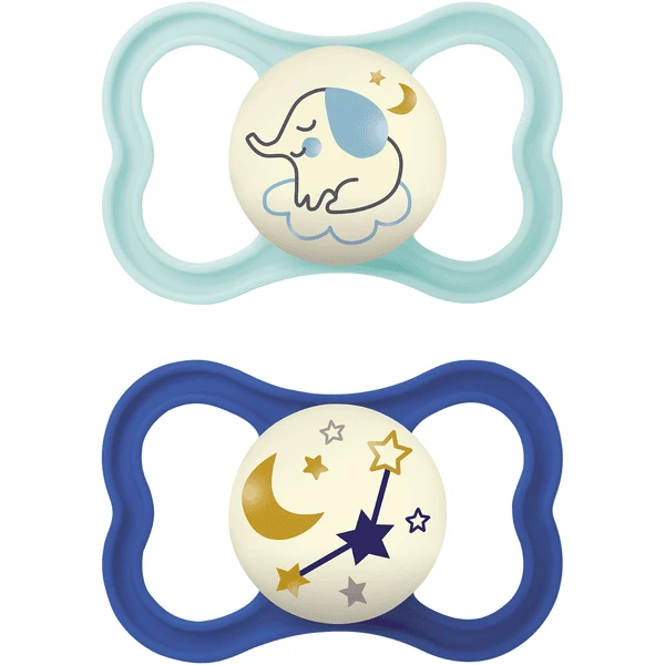 - 2x MAM Nachtfopspeen Air Night silicone, 6-16 maanden, olifant/sterren