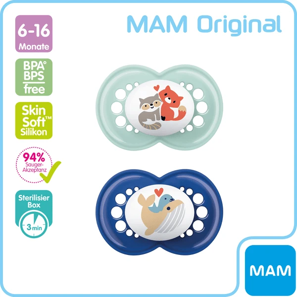 - Met zijn trendy kleuren en motieven zal de MAM Original siliconen fopspeen set van 2 snel een geliefd onderdeel worden van de uitrusting van uw baby.