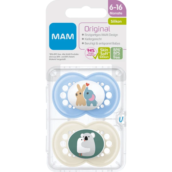 - 2x MAM Soother Original Silicone, 6-16 maanden, Elefant/Koala