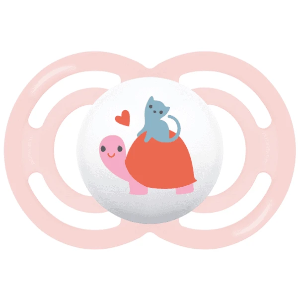 - Zowel de speen als de fopspeen child hebben een symmetrische vorm, zodat de fopspeen altijd op de juiste manier in de mond ligt.