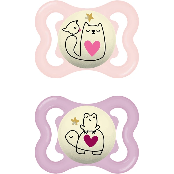 - 2x MAM nachtfopspeen Supreme Night silicone, 0-6 maanden, kat/kikker