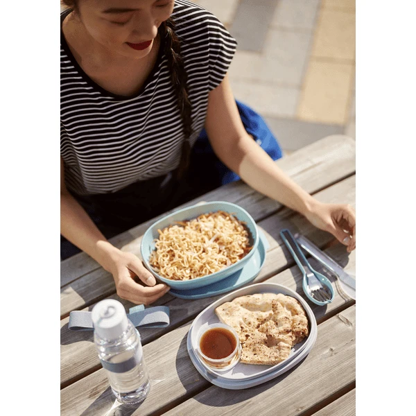 De stijlvolle en praktische Ellipse bestekset van MEPAL bevat een mes, vork en lepel, compact en beschermd in een herbruikbare hoes.