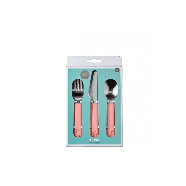 De bestekset MEPAL mio in de kleur diep roze is hiervoor ideaal. De set bestaat uit een vork, een mes en een lepel.