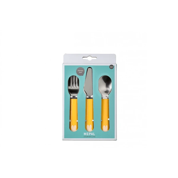 De bestekset Mepal Mio in de Design Nijntje Explore is hier ideaal voor. De set bestaat uit een vork, een mes en een lepel.