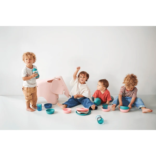 Maar ook als u uw kind nog voedt, zorgt de inkeping ervoor dat u het bord met één hand kunt vasthouden en met de andere kunt voeden. Dubbel zo mooi! De anti-slip onderzijde zorgt ervoor dat de leerplaat altijd stabiel staat.