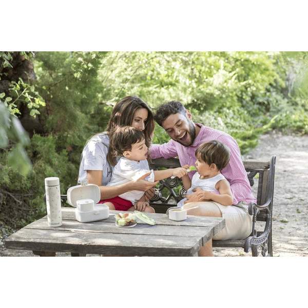 Met deze Thermo containers heeft u de mogelijkheid om het Babys voedsel thuis te bereiden en mee te nemen naar elke gewenste plaats, omdat deze containers het voedsel vele uren op de gewenste temperatuur houden.