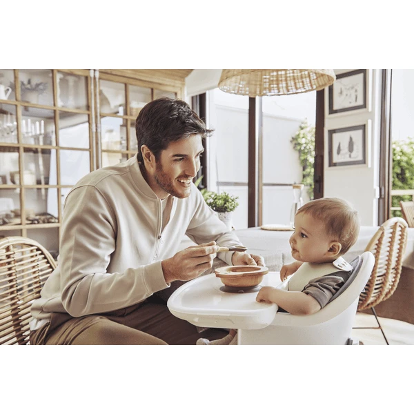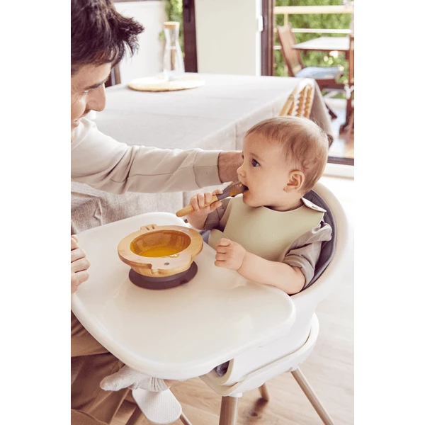 - De schaal heeft een siliconen zuignap aan de onderkant, waardoor het bordje gemakkelijk op het oppervlak van de kinderstoel of tafel kan worden geplaatst