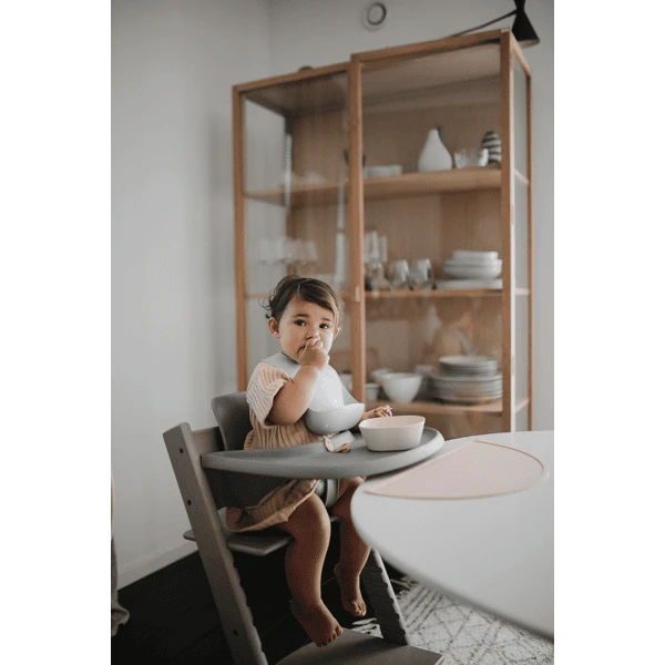 - Diepe zak vangt voedsel op en houdt uw kind en zijn omgeving schoon