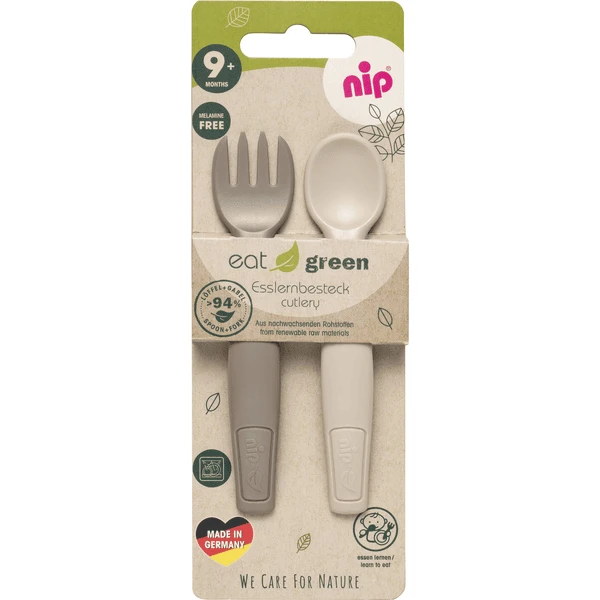 - Het Eat Green eetbestek van nip ® is gemaakt van bio-based plastic met meer dan 94% hernieuwbare grondstoffen (suikerriet (bio-based koolstofgehalte volgens ASTM D6866)).