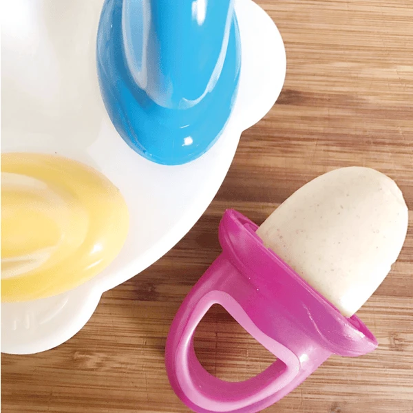 - Vul de vormpjes met verse vruchtenpuree of sap en vries ze in