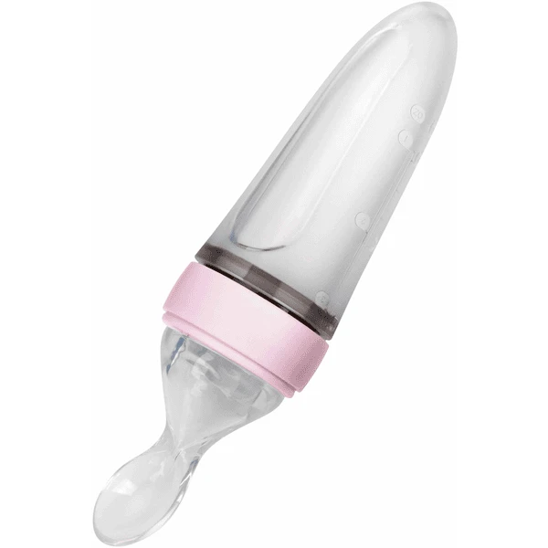 Nûby speciale voedingslepel gemaakt van PP met voedingscontainer gemaakt van siliconen 90 ml in roze