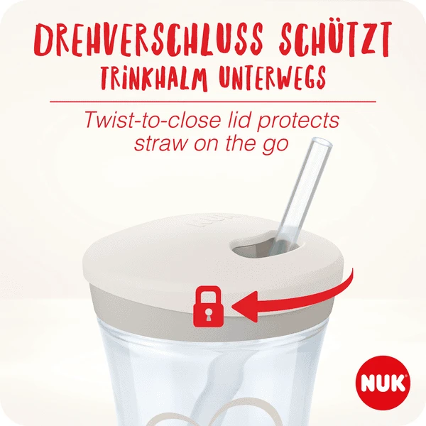 Lees aandachtig de waarschuwingen en gebruiksaanwijzingen binnenin. Bewaar de productinformatie en het artikel-/ PARTIJNr. voor later gebruik. Drinkrietjes zijn niet geschikt voor kinderen jonger dan 6 maanden. NUK Bekers en drinkhulpstukken kunnen alleen worden gecombineerd met het desbetreffende productassortiment.