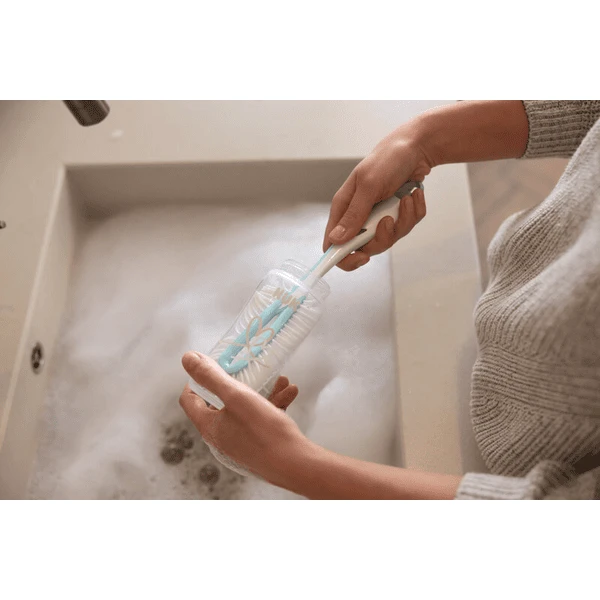 - Door het luchtgat in het handvat van de flessenborstel kan de speenborstel snel drogen