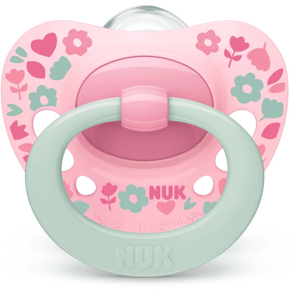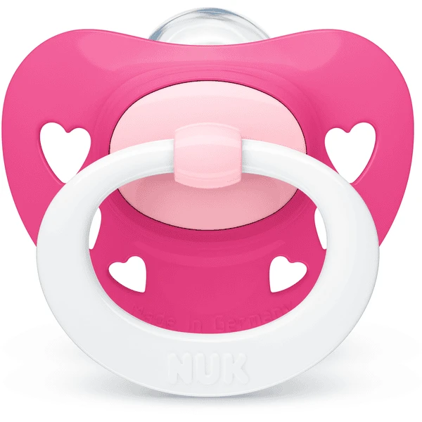 De populaire NUK fopspeen is nu verrukkelijk met een prachtige nieuwe Design : hij geeft de beroemde hartvormige mond child nog meer vloeiende, zachtere vormen en brengt het charmante kleine ringetje op de nieuwste stand. Voor een nieuwe klassieker die dit kleine gezichtje nog schattiger maakt.