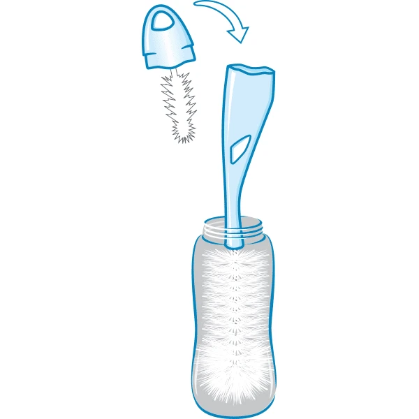 - Praktisch: de speenborstel wordt rechtstreeks in het handvat van de flessenborstel geklemd en kan niet meer zoekraken!