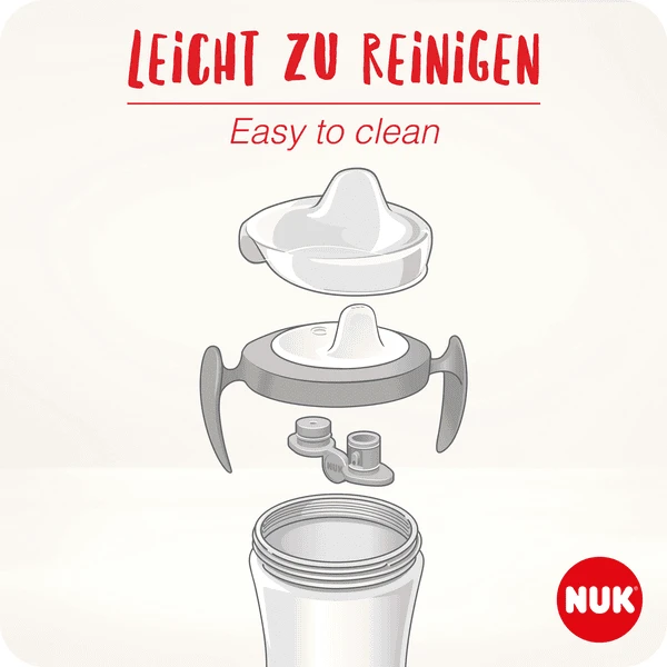 De beker is gemaakt van hoogwaardig, robuust materiaal, 100% BPA-vrij en bedrukt met leuke motiefjes. Hij bestaat uit extra weinig afzonderlijke onderdelen die in een handomdraai uit elkaar kunnen worden gehaald en weer in elkaar kunnen worden gezet. Bovendien zijn alle onderdelen eenvoudig en effectief te reinigen, zodat u meer tijd overhoudt voor de belangrijkste zaken.