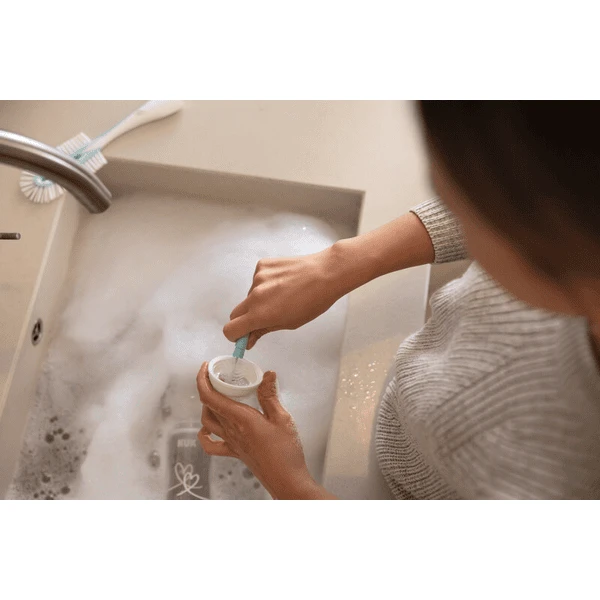 - Het luchtgat in het handvat van de flessenborstel zorgt ervoor dat de speenborstel snel droogt