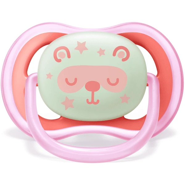 Verzacht uw baby met een fopspeen die de huid laat ademen en ’s nachts gemakkelijk te vinden is. De ultra lucht night heeft extra grote luchtgaten om de gevoelige huid zacht en droog te houden en een glow-in-the-dark knop zodat u het kunt zien als het licht uit is.