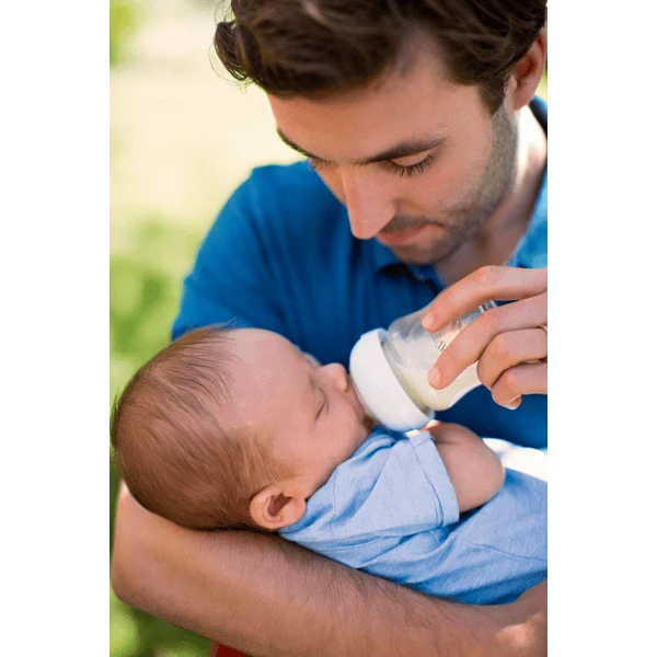 Onze Natural-fles met ultrazachte speen lijkt meer op de borst. De brede, borstvormige speen met flexibel, spiraalvormig design en comfortkussentjes voor natuurlijk aanleggen zorgt dat borst-en flesvoeding gemakkelijk kunnen worden gecombineerd.
