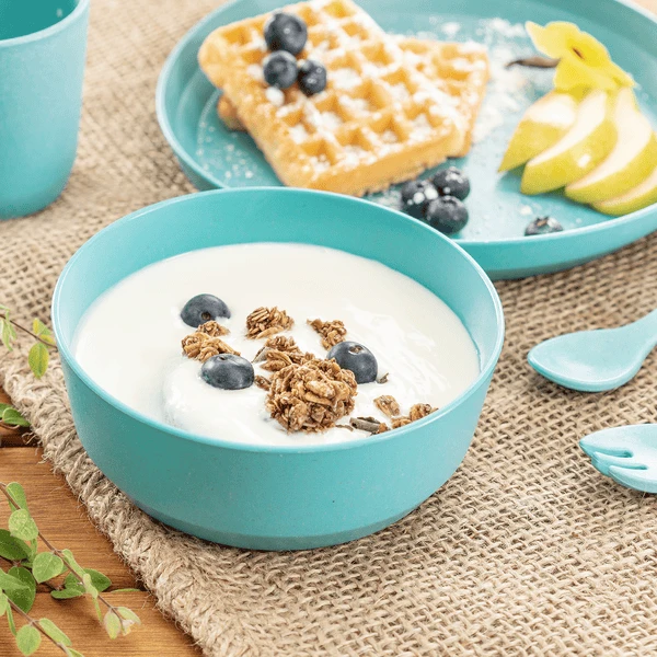 Eten van servies in vrolijke kleuren smaakt veel beter, want het is niet alleen het eten dat bepaalt of je lieveling van de maaltijd geniet. Daarom kunnen de serviessets in frisse kleuren perfect worden gecombineerd en toveren ze een kleurrijk gedekte tafel tevoorschijn – precies zoals uw kind het graag heeft. Dit wekt de nieuwsgierigheid en de belangstelling voor voedsel en bevordert de ontwikkeling van actieve eetgewoonten.