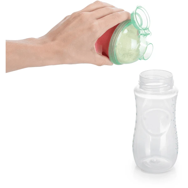 Als je kleintje honger krijgt, moet het meestal snel gaan. Met de vultrechter kunt u de melk bijzonder snel bereiden. Schroef eenvoudig het deksel op de voorraaddoos en het poeder kan in de fles worden gevuld. Op die manier vermijdt u het omslachtige en tijdrovende decanteren van het poeder met een lepel. Bovendien bent u er zeker van dat al het poeder in de fles terechtkomt en dat u niet de helft mist.